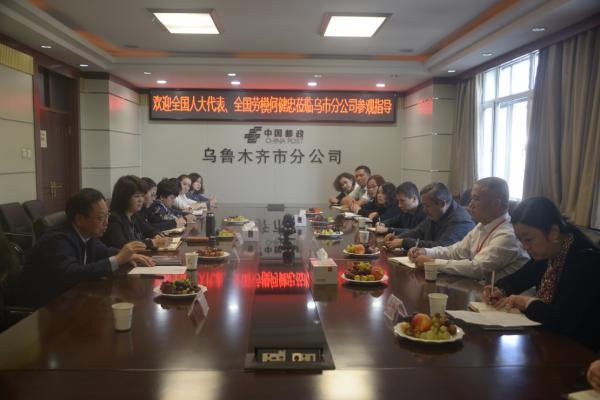 9月14日下午,全國人大代表、全國勞模、江蘇省泰州市泰興郵政局江平路支局長何健忠在區(qū)分公司副總經理阿布都許庫爾·買買提的陪同下到烏市郵政分公司參觀指導。
